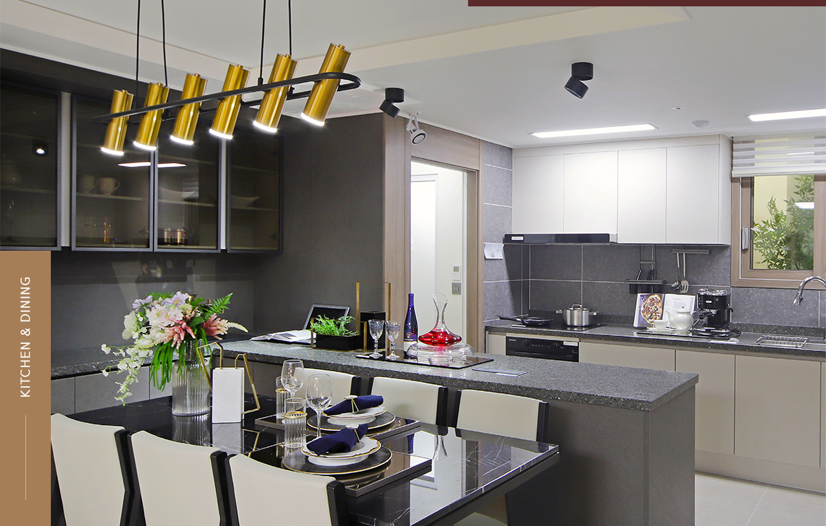 - 상기 사진은 모델하우스를 촬영한 것이며 설계상, 평면상의 문제로 인하여 일부 변경 또는 제외될 수 있으며, 마감재 이외 디스플레이를 위한 상품이 포함되어 있어 실제와 다소 차이가 있을 수 있습니다.